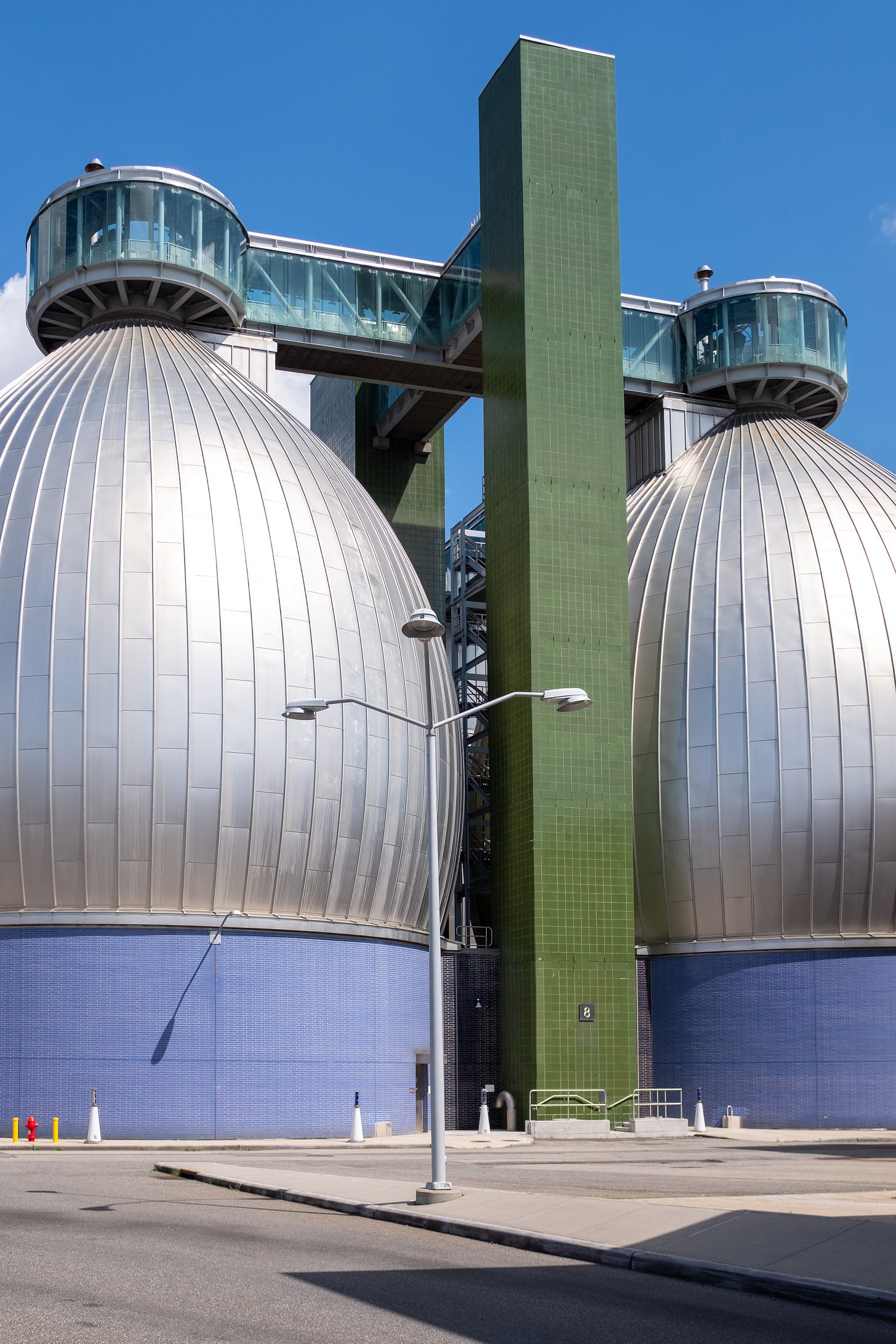 Originally built in 1967, the Newtown Wastewater Treatment Plant is the largest of the 14 total wastewater treatment facilities operated by New York City In 2009, a massive renovation was undertaken to increase plant capacity by 50% in compliance with the Clean Water Act, and as part of that process, the metal digester eggs were completed in 2010.